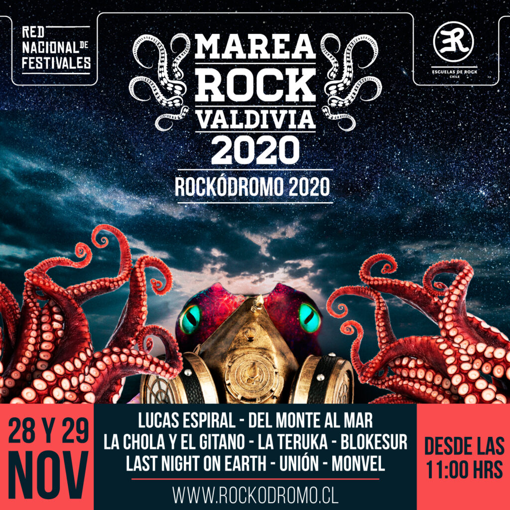 En 2020, y considerando las restricciones a su realización suscitadas por la llegada de la pandemia del coronavirus covid-19 a Chile, el Festival Marea Rock se pliega a la transmisión nacional de Rockódromo 2020, en su primera jornada online. Aquí puedes revisar la totalidad de las presentaciones de ese año, en un registro realizado durante octubre de 2020 en el Teatro Cervantes de Valdivia.